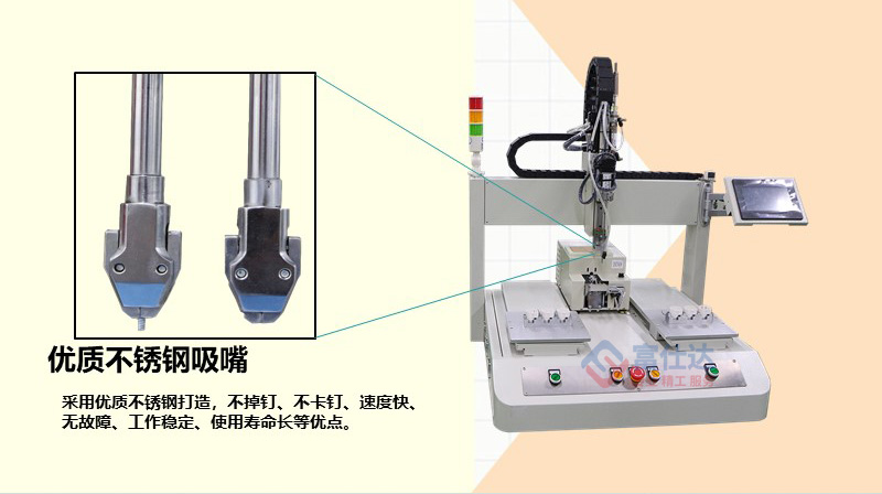 通過觸摸屏對產品螺絲孔位坐標進行設置,并可儲存多套方案,滿足不同產品螺絲鎖付要求,坐標式全自動鎖螺絲機靈活性較強。雙平臺設計可實現取放產品與鎖付螺絲同步進行,無需等待,節(jié)省生產時間。