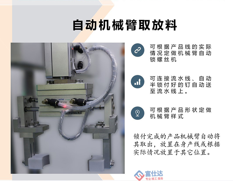 富仕達(dá)擁有獨立研發(fā)設(shè)計團隊,10多位自動化高級工程師,5000㎡自動鎖螺絲機生產(chǎn)、測試車間,專業(yè)售后服務(wù)團隊,為客戶提供方案設(shè)計、設(shè)備制造、操作培訓(xùn)、售后服務(wù)等一站式服務(wù)。 公司將持續(xù)提升技術(shù)創(chuàng)新和產(chǎn)品服務(wù)方面的優(yōu)勢,堅持“專業(yè)、精工、服務(wù)”的企業(yè)理念,聚焦于自動鎖螺絲設(shè)備生產(chǎn),通過系統(tǒng)的一站式解決方案,真正的幫助客戶提升效率、降低成本,提升客戶的核心競爭力。
